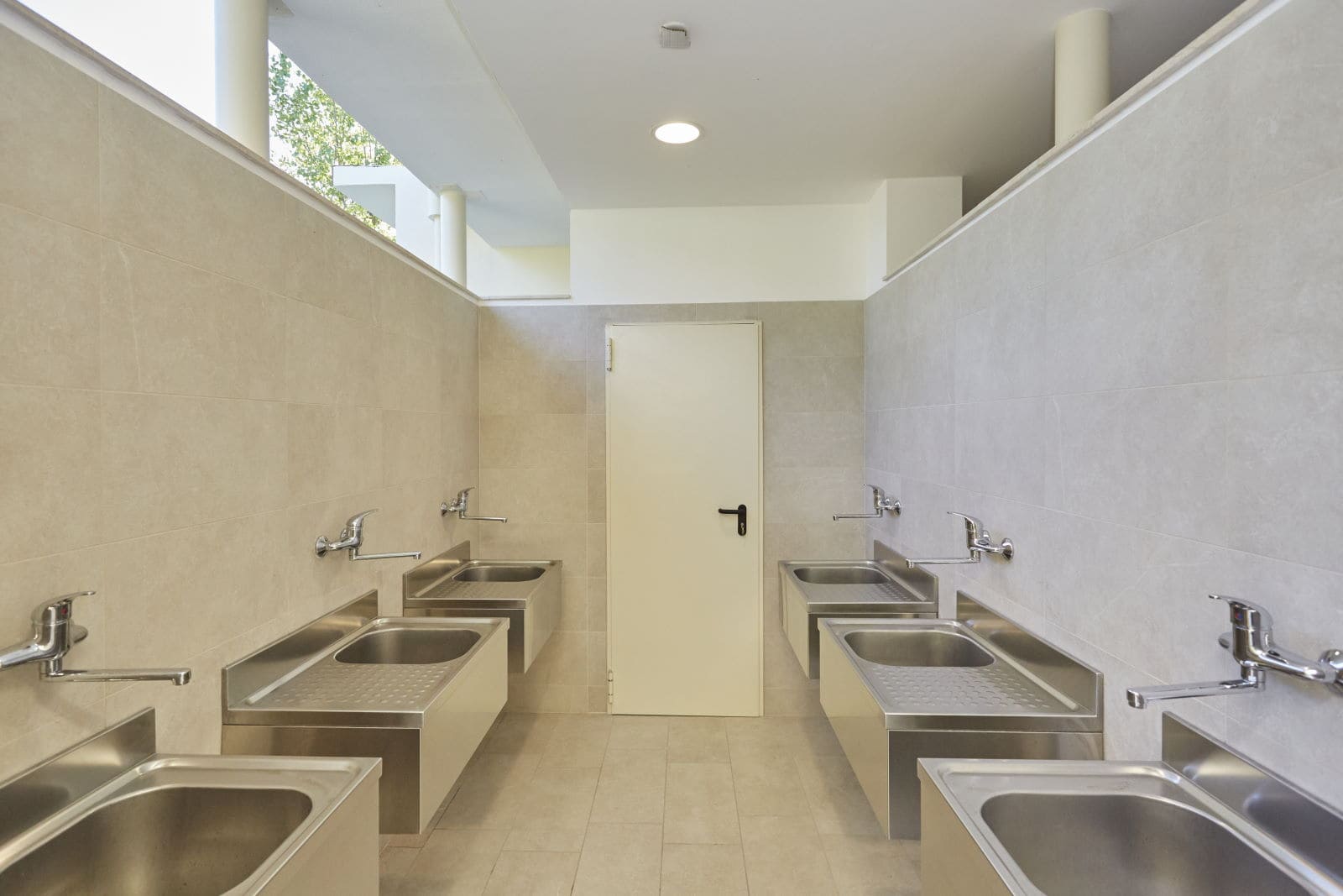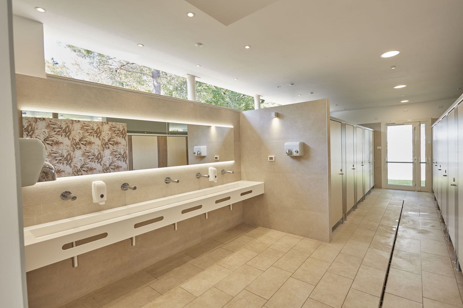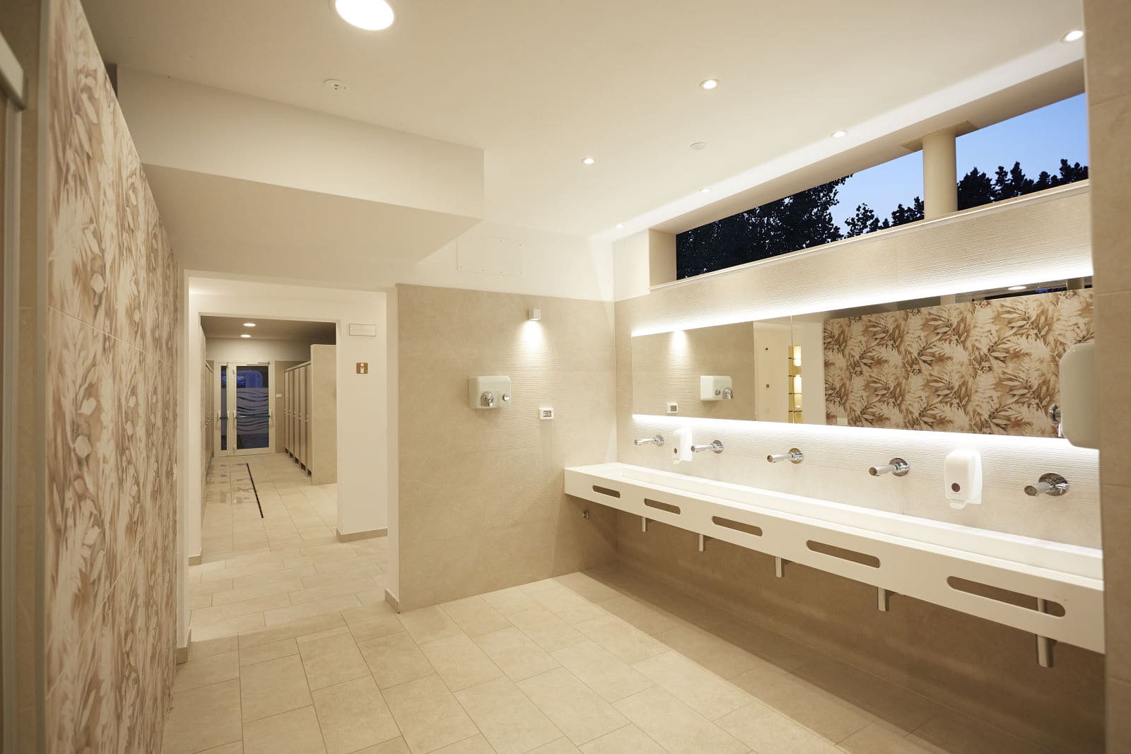 I servizi igienici sono attrezzati con: bagni, docce, acqua calda e fredda, lavatoi per biancheria, lavelli per stoviglie, lavatrici, asciugatrici, lavastoviglie, nursery e baby room.