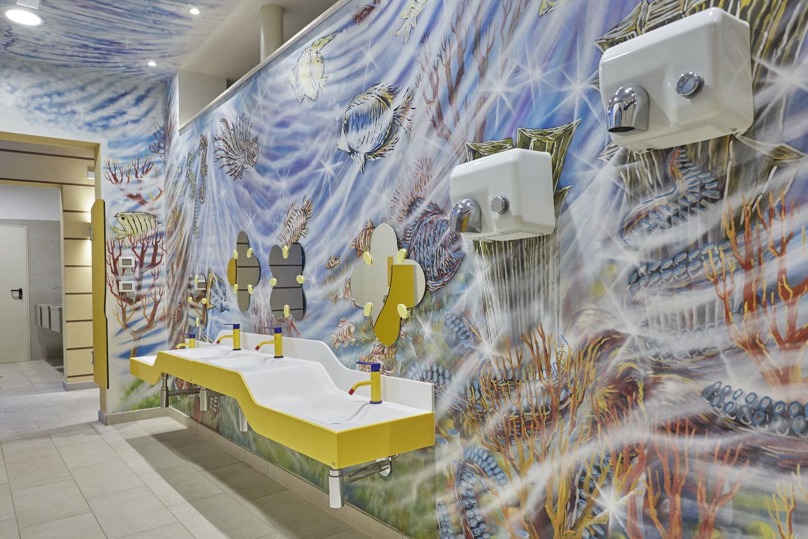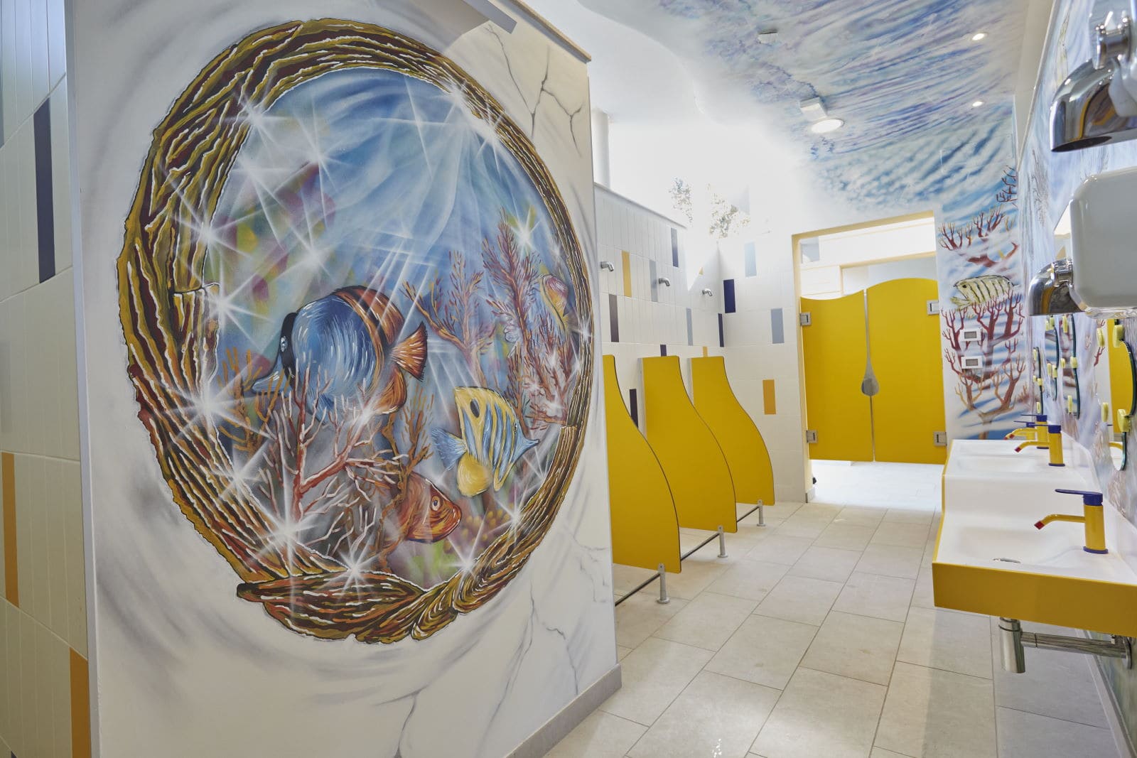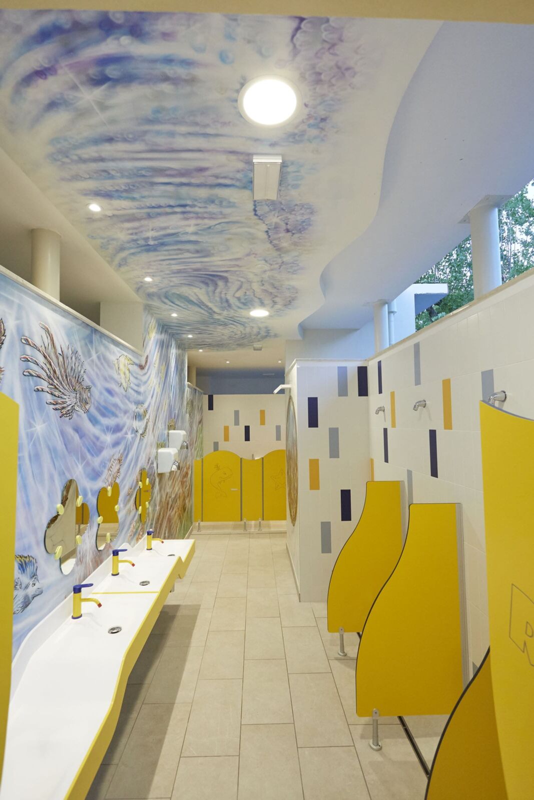 I servizi igienici sono attrezzati con: bagni, docce, acqua calda e fredda, lavatoi per biancheria, lavelli per stoviglie, lavatrici, asciugatrici, lavastoviglie, nursery e baby room.