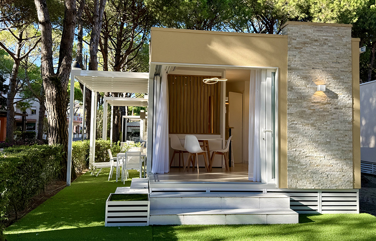 5 Pers. • Mt. 8,30 x 3,50 ca. • patio Mq. 18 ca.Maxi caravan che racchiude tutto ciò di cui si ha bisogno per un soggiorno al top.